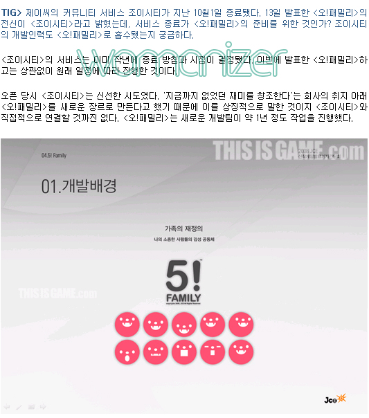 조이시티와 오!패밀리에 대한 관련 정보