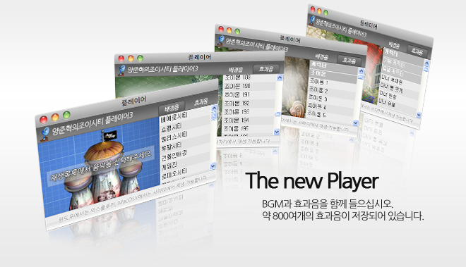 플레이어3는 효과음(약 800개) 듣기가 추가되었습니다.